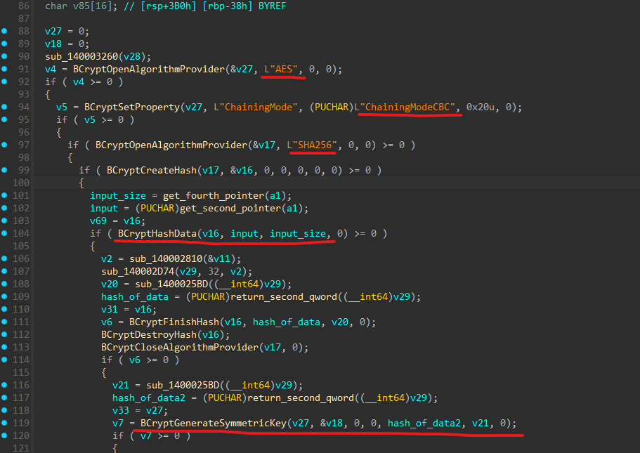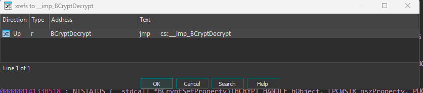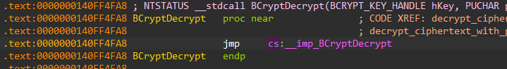 The most important function in this context is BCryptDecrypt for obvious reasons, I’ll see who calls it: