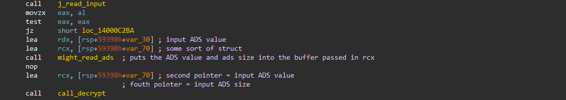 I traced the read_input function that reads from the ADS and see it has 2 calls, both from the big function.