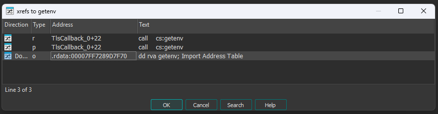 Opening the binary in IDA I first noticed there is a TLS Callback registered (will execute before main) that checks the environment variable the run.bat just set.